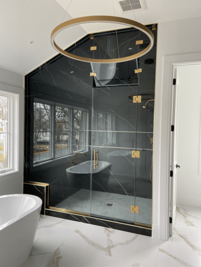 In this project in Englewood, Our clients were looking to create a timeless yet modern look with this master bathroom. At Suburban Glass, we welcome partnering with a team of experts. We worked with the client’s designer and contractor to bring the concept for this elegant steam shower to life. With our years of experience installing all types of glass for many kinds of projects we knew exactly how to bring it all together.